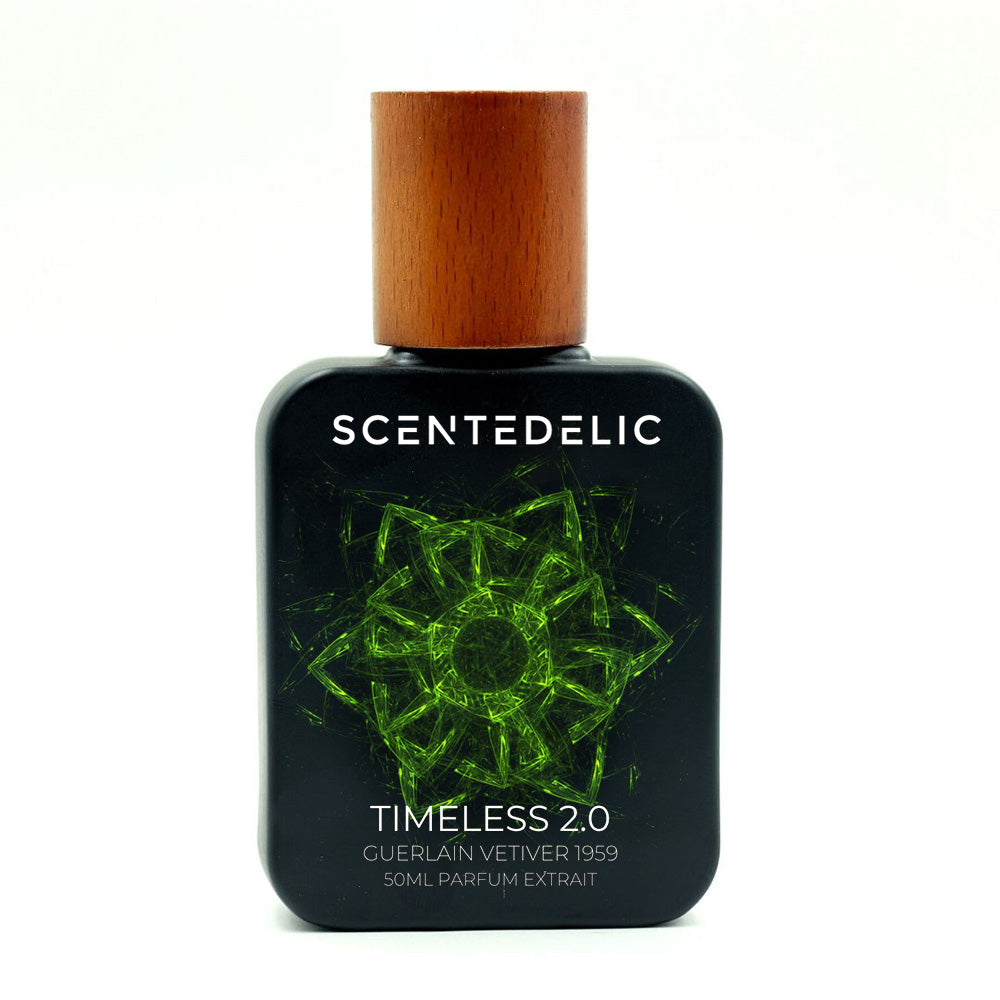 Handcrafted parfum extrait cover of Guerlain Vetiver vintage (1959's EDT splash). Classic vetiver with bright lemon opening, earthy vetiver and tobacco heart, warm pepper, nutmeg, and tobacco base. Timeless masculine elegance. Part of the Timeless Series.